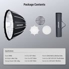 • Quick Release & Quick Fold Structure- 16 highly resilient ribs give this softbox incomparable durability and an impeccable parabolic shape that can withstand tens of thousands of presses without deformation for years of use. The quick release design allows you to set the softbox up in less than 15 seconds without any tool. Foldable and merely 4.6lb(2.1kg) in weight, the softbox is easy to store and transport inside the included carrying bag