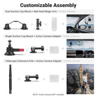 - 360° Dual Ball Head Flexible Angles- The two 360° rotatable ball heads on the magic arm, with the option to attach to the top U bracket via a 1/4" thread, can be adjusted to any angle for optimal shooting flexibility. The single suction cup mount enables 180° front and back adjustments with the thumb screw. Note: If residues appear on car and desktop surfaces, please clean them with alcohol.