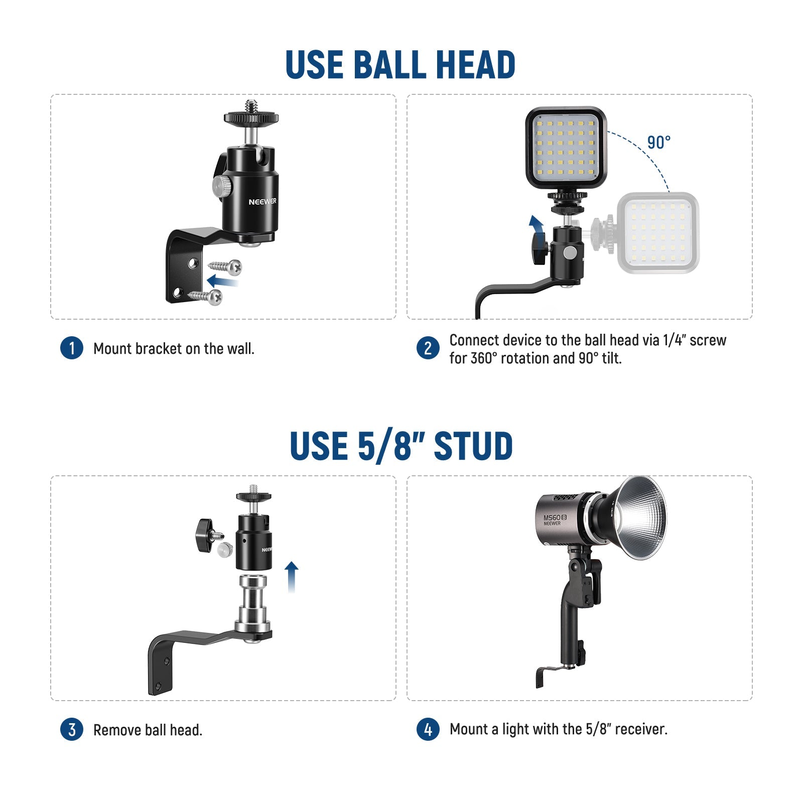 - Space Saving Versatile Mounting- The NEEWER E shaped wall mounting brackets offer a more compact and secure solution for attaching equipment to walls or ceilings in photography, videography studios, hair salons, and tattoo workspaces