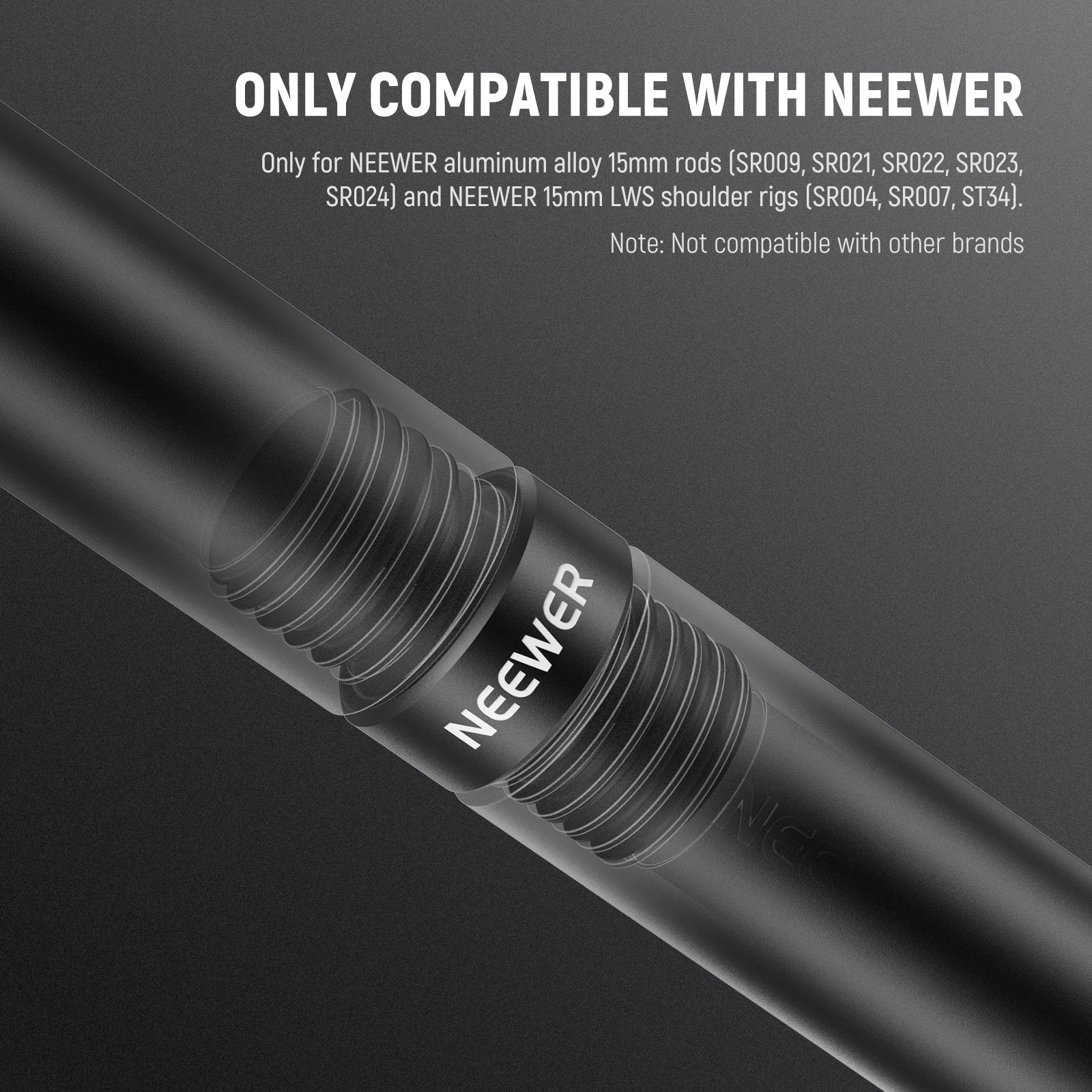 - Only Compatible with NEEWER- Only for NEEWER aluminum alloy 15mm rods (SR009, SR021, SR022, SR023, SR024) and NEEWER 15mm LWS shoulder rigs (SR004, SR007, ST34). Not compatible with other brands