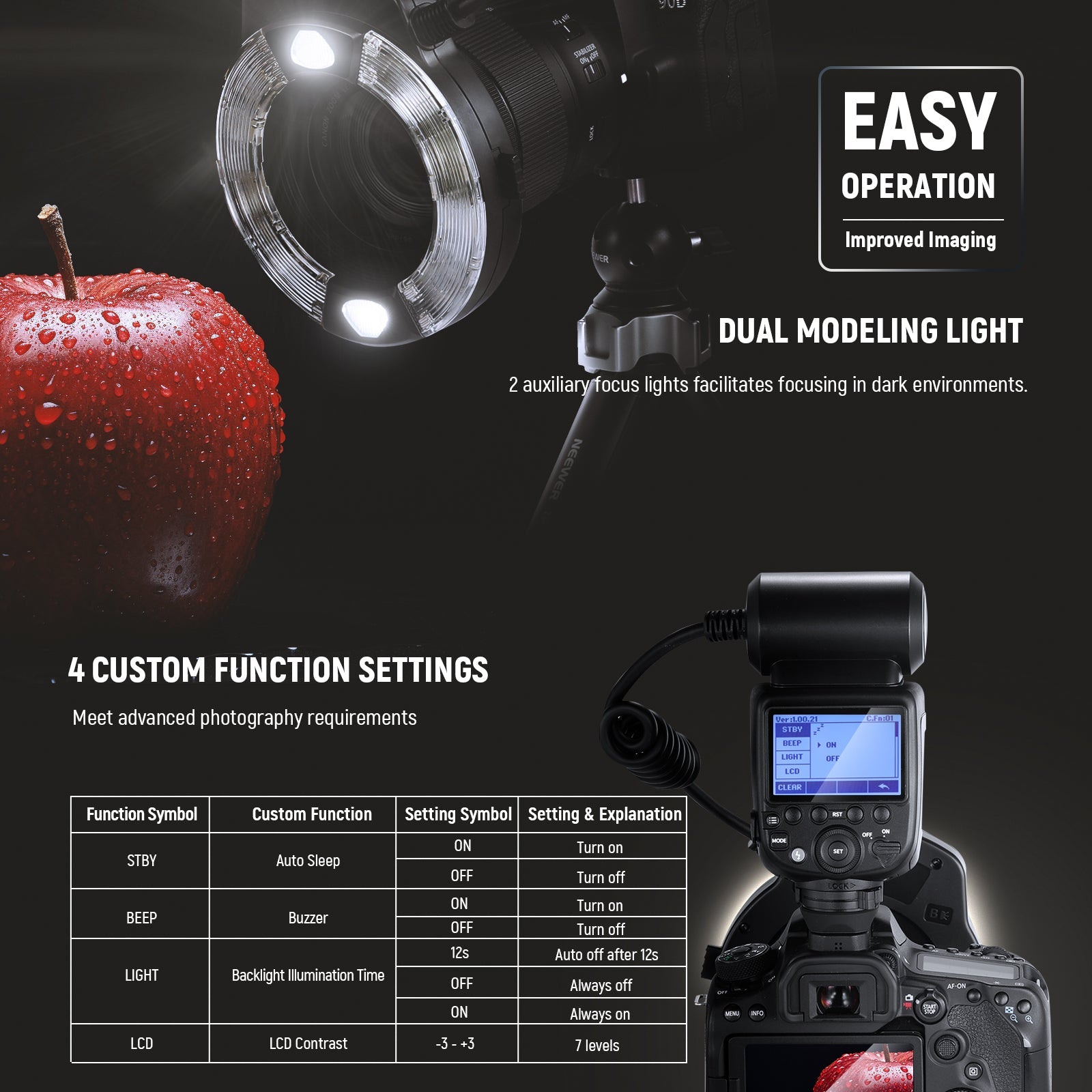 NEEWER RF1-C/N/S 76Ws 5600K GN15 TTL Marco Ring Flash