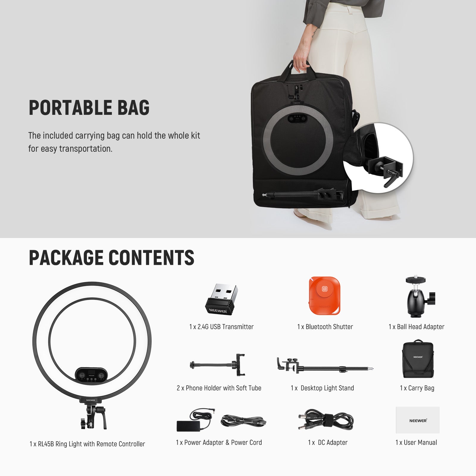 NEEWER RL45B 45W 18" Slim Edge Lit Ring Light Kit