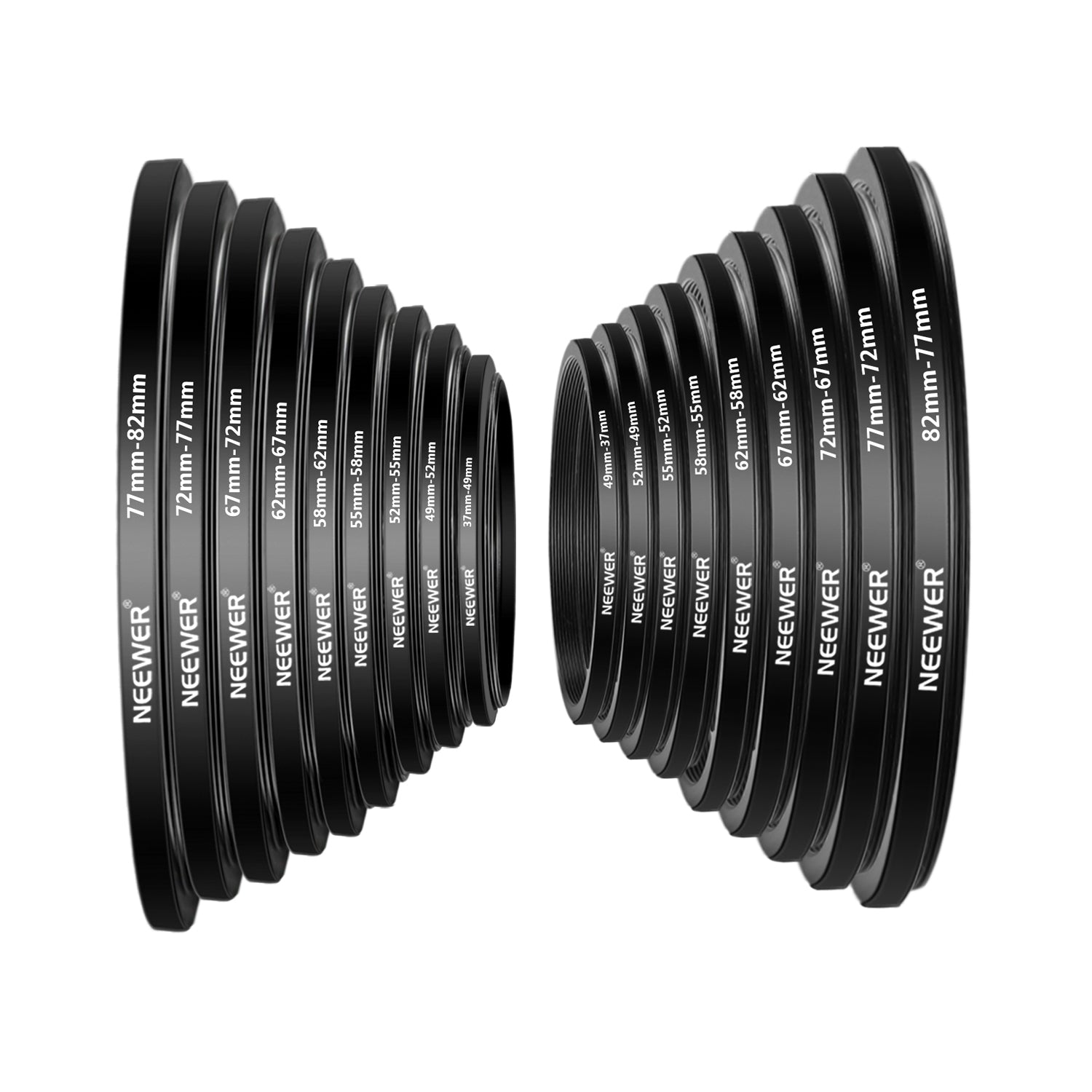 NEEWER 18 Pieces Metal Camera Lens Filter Adapter Ring Kit