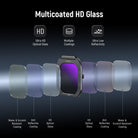 - Multicoated HD Optical Glass- Premium HD glass ensures clear imaging and accurate color reproduction. Multiple protective coatings resist water, dust, oil, and fingerprints while minimizing unwanted reflections