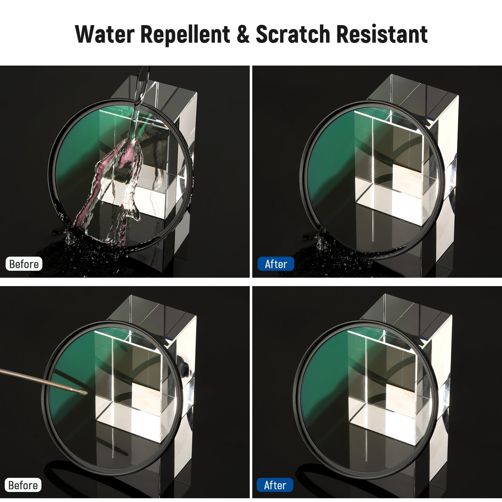 • Double Sided Nano Coatings- 30 layers of nano coatings on both sides protect the HD optical filter glass against scratches, fingerprints, smudges, and dust while retaining the clarity for sharp and detailed photographs