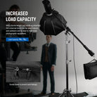 - Ergonomical Design- The top is designed to hold the light more securely. The long locking knob and foam handle at the bottom enable the photographer to adjust the overhead boom arm with great ease and lock it tight in position.