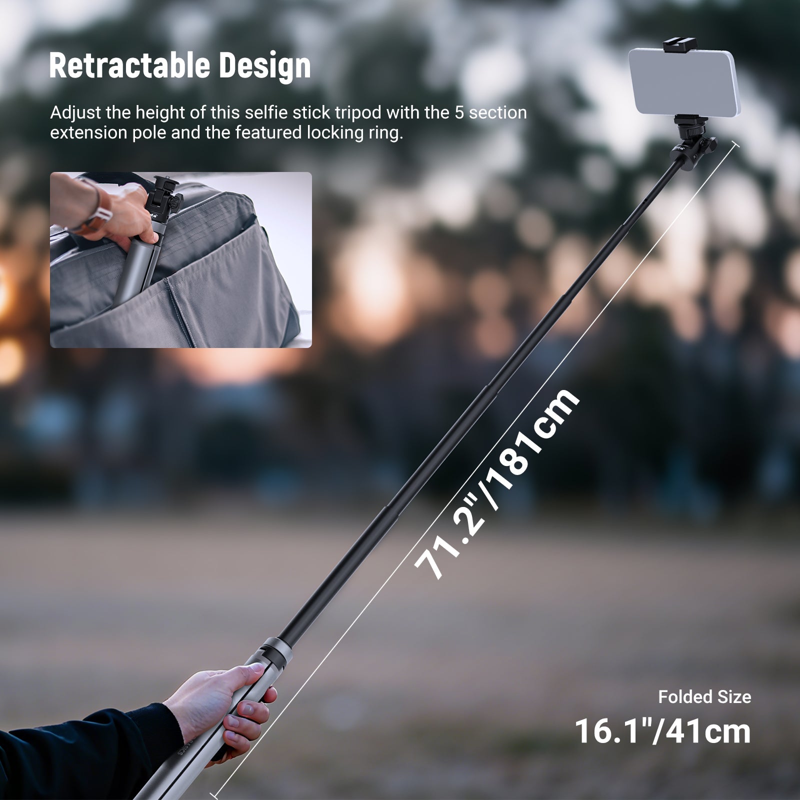 • Lightweight, Portable & Convertible- Crafted from aluminum alloy, the stand is easy to carry and quick to set up. It can also convert into a handheld selfie stick for flexible on the go shooting as content creator essential and influencer must have
