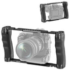 - Dual Grips & Tripod Mounted- The two ergonomic handgrips with synthetic leather texture and finger contours offer you a comfortable and firm grip on the cage for handheld shooting, or directly it on the tripod head via the 1/4" screw holes on the bottom, for seamless switching between handheld and tripod shooting, thanks to its Arca type base