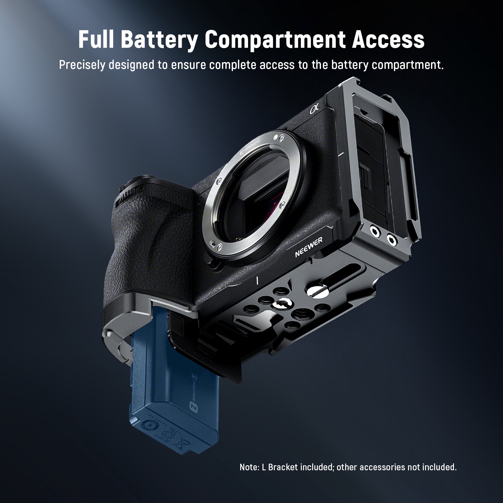- Form Fitting Design Compatible with Sony A6700- Crafted from CNC machined black anodized aluminum alloy, this L bracket provides complete access to your A6700 camera's eyecup, flip screen, battery compartment, function buttons, and ports. Weighing just 3.7oz/106g, it's lightweight and convenient for on the go shooting
