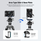 - Extendable Side Plate for Cables- The side plate can be extended 0.83"/21mm to add flexibility and more space for cables to pass through when shooting vertically, and a built in cold shoe to attach more accessories. (It is recommended to use a right angle data cable. The maximum load capacity for vertical shooting is 11lb/5kg)