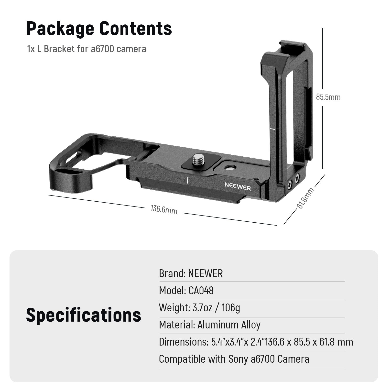 NEEWER CA048 L Bracket for Sony Alpha 6700