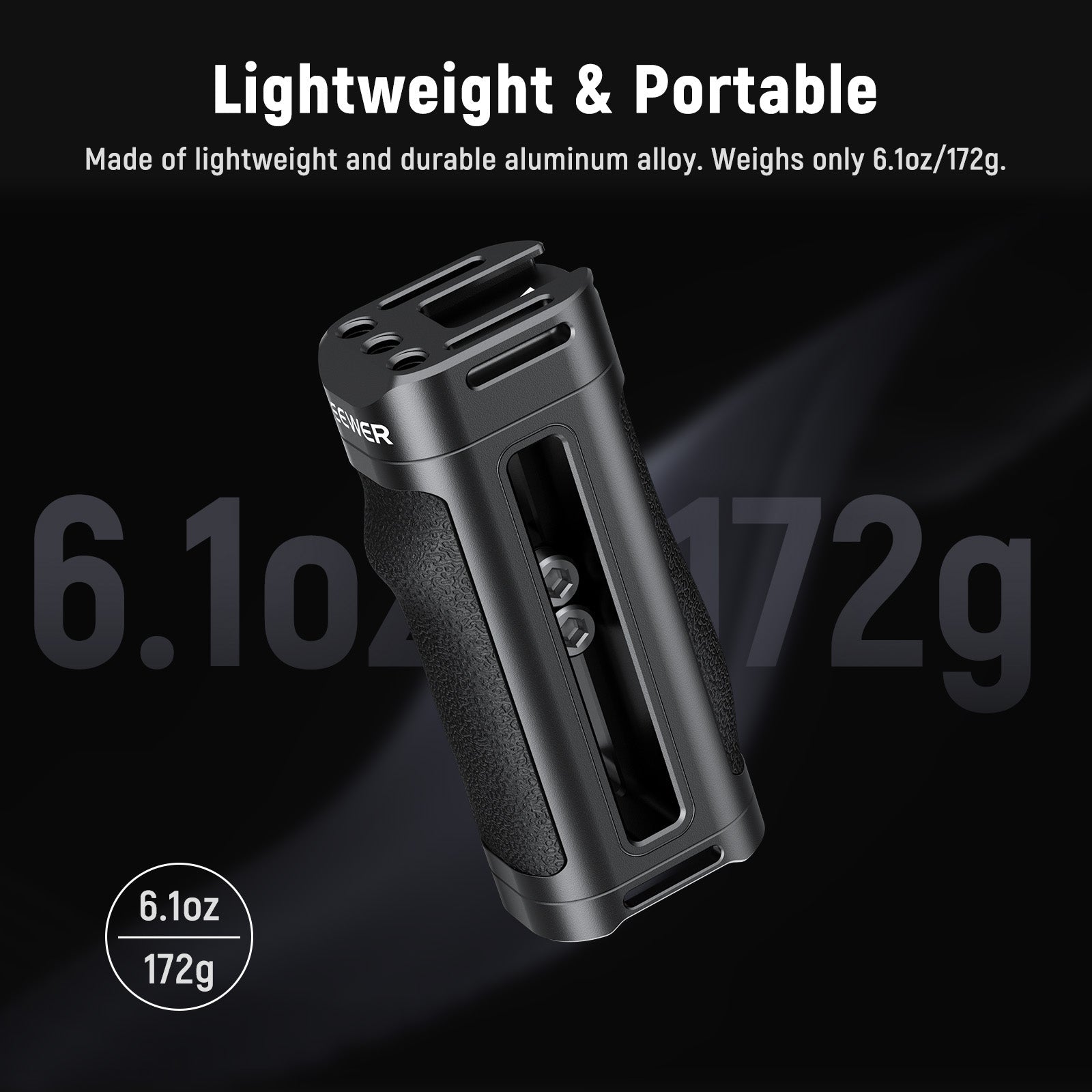 - Ergonomic Contoured Handle- Made of ABS, PC, and aluminum alloy, this camera side handgrip is durable but lightweight. The contoured nonslip silicone handle gives you a comfortable and firm grip for outdoor recording