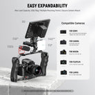 - Comfortable Dual Handles- Two contoured silicone handles provide a comfortable and firm grip for stable handheld shooting. The camera cage made of durable yet lightweight aluminum alloy is effortless to operate. Only 29oz/818g in weight, it can support a load of up to 33lb/15kg