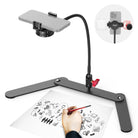 - Shock Absorbent Overhead Phone Mount- The overhead phone tripod features an exclusive shock absorption design and a weighted metal base for enhanced stability, with the flexible tube and the ball head adapter for seamless adjustments, ensuring steady footage for drawing, sketching, craft design, selfies, vlogs, online cooking show, live streaming, Zoom meetings, video recording, filming, etc.
