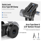 - Arca Type Base & 3/8" Bottom Thread- Integrated with an Arca type base that effortlessly slides into the Arca type quick release clamp base of a tripod, stabilizer, slider, handgrip, or other support systems. The bottom 3/8" threaded hole can also be attached to a tripod, monopod, slider, etc