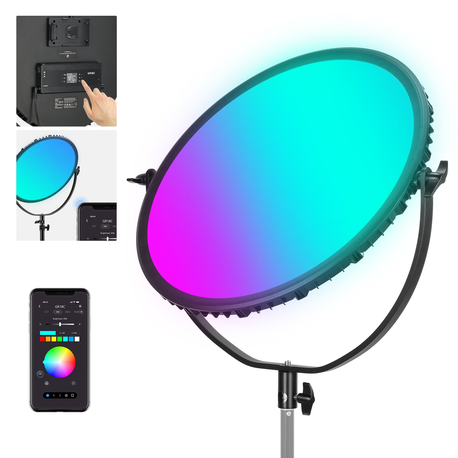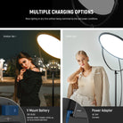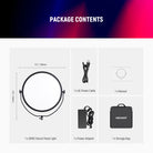 - 18" RGB Full Color & Pioneering Edge Lit Tech- Thanks to the advanced LED edge lit technology, this 65W round fill light features an 18" diameter and a generous 2.3cm thick panel that delivers 360° full color lighting gentle on the eyes, defining facial features with a 6000lux/0.5m max illuminance without glare. With a 97+ CRI & TLCI rating, 0~100% dimming, 2500K~8500K bi color temperature, and a bag for portraits, beauty & fashion shots, live streaming, product photography, etc.