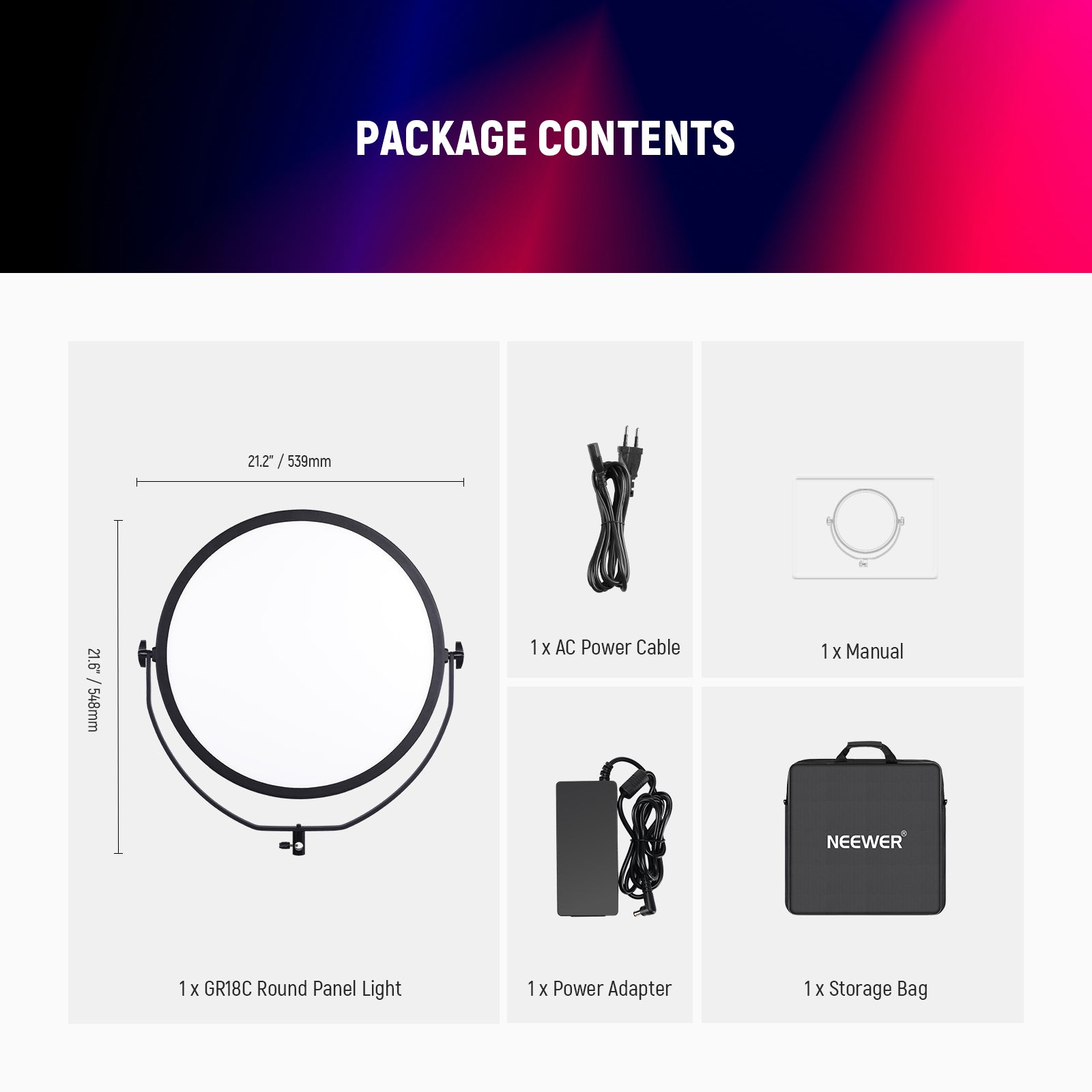 NEEWER GR18C 18" LED Round Panel Video Light