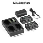 Triple-Slot USB Charger- This triple-slot charger can charge 3 LP-E6 batteries simultaneously. A simple and clear LCD screen displays the charging status of each battery