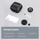 - 2 Level LED Light- The 2 Level LED Fill Light attaches to your lens and offers two brightness settings. It charges via USB C (red for charging, white for full), with a 50mAh battery that charges in 2.5 hours and lasts up to 3 hours at full brightness"