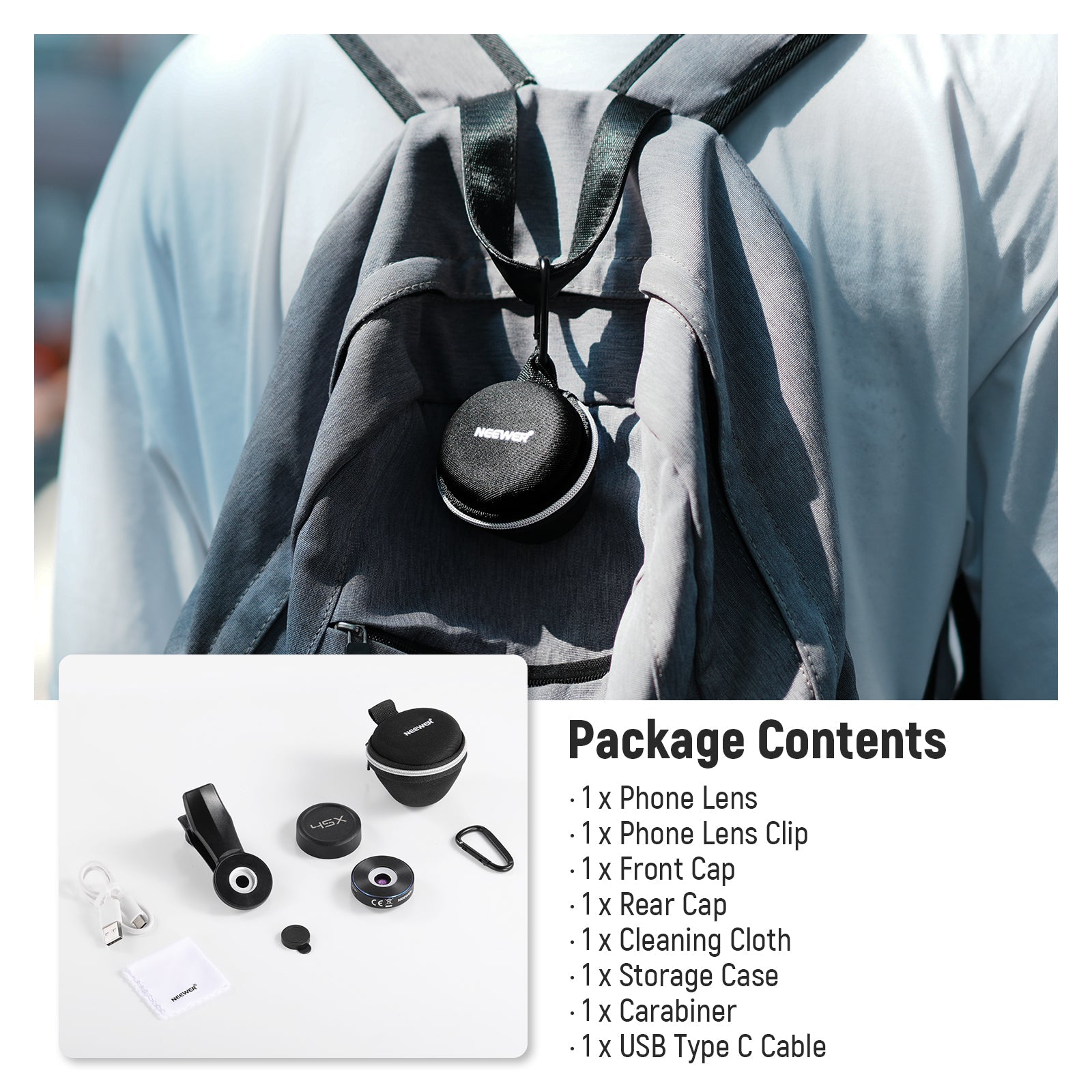 - 17mm Thread Phone Lens Clip- The kit includes a phone camera lens clip to securely connect the lens and compatible with iPhone 16 Pro Max iPhone 15 Pro Max 14 13 Samsung Galaxy S24 S23 S22 Ultra and other smartphones for quality photography and filming. The lens is also suitable for NEEWER phone cages, phone cases, and backplate accessories with 17mm threads