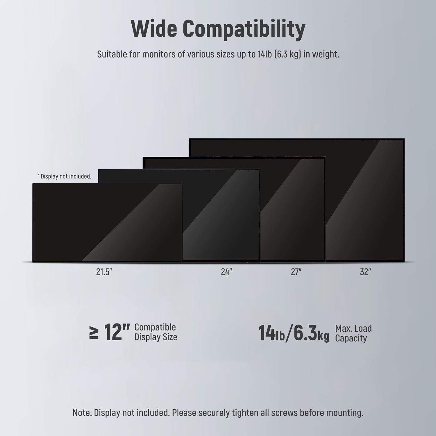 - Support Up to 14lb/6.3kg Monitors/Panels- Solidly constructed with premium aluminum alloy, this monitor mount adapter can stabilize a monitor up to 14lb (6.3kg) in weight. It is ideal for mounting monitors, displays or TVs of different sizes and can be used for meetings, presentations, public spaces or for production teams to view reference videos or materials