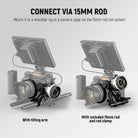- Flexible Arm Positions- With a single 15mm rod clamp, the arm can connect PG001 to a camera cage or shoulder rig through a 15mm rod and tilt 138° to accommodate cinema cameras, DSLR cameras, and lenses of different sizes