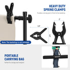 - Reinforced Backdrop Clamps- Four reinforced spring clips for backdrop stand secure polyester/muslin backdrops, seamless paper, and canvas in place. The 2"/5cm jaw opening and pivoting pads hold backdrops of various thicknesses