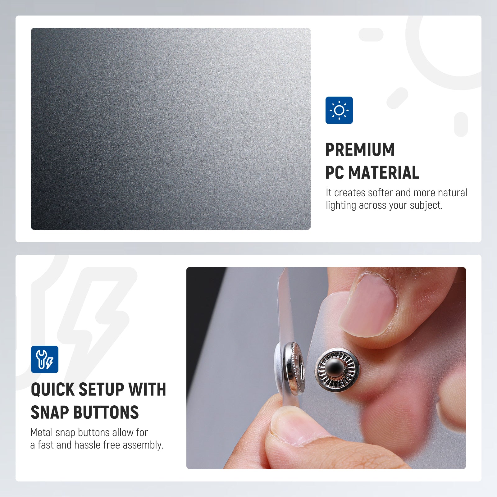 - Quick Setup with Snap Buttons- Metal snap buttons allow for a fast and hassle free assembly, letting you quickly set up and start shooting without delays