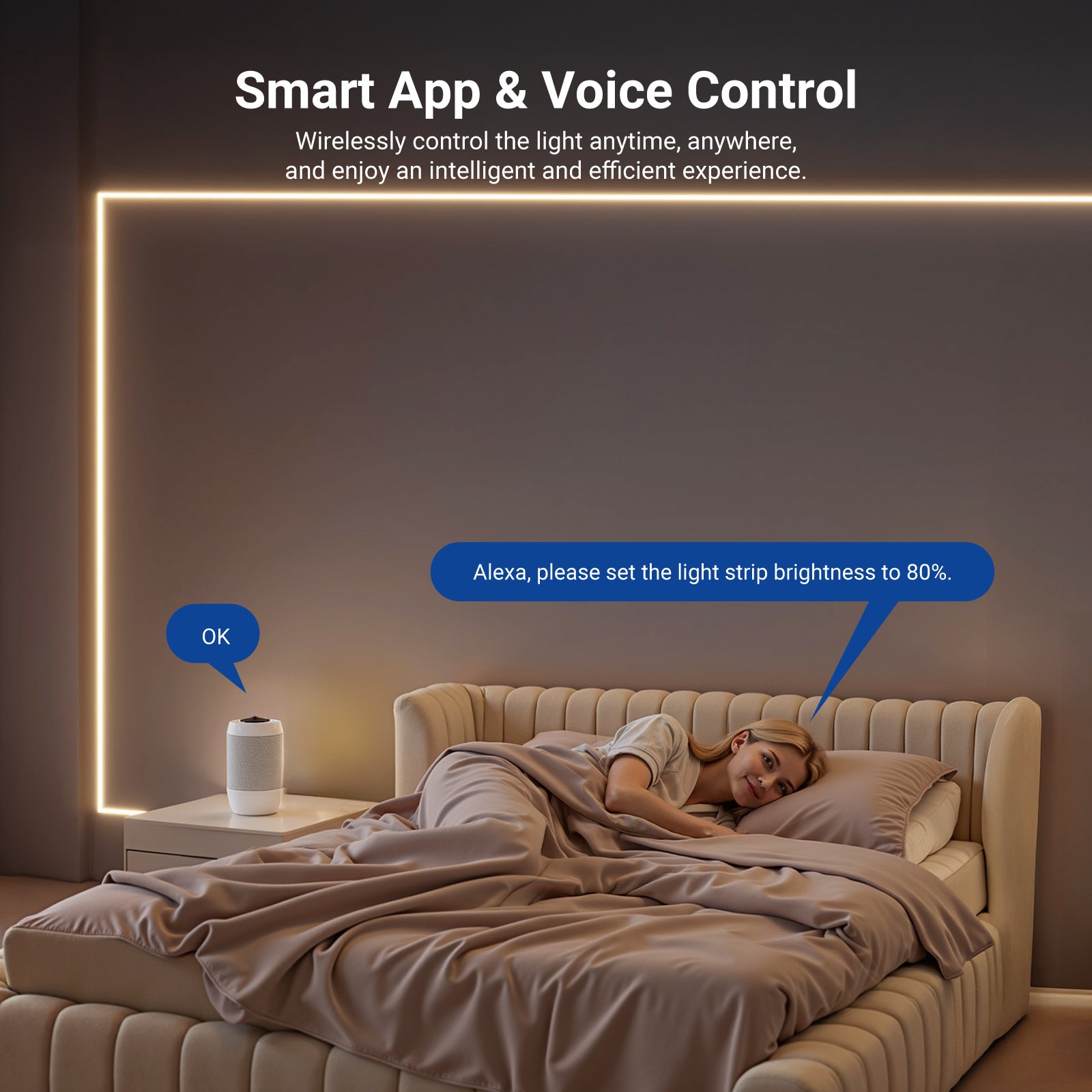 - Wireless App & Smart Voice Control- Connect via Bluetooth to the NEEWER Home App for a rich and efficient lighting control experience. You can also adjust brightness or switch modes quickly using the included control box. Additionally, compatible with Google Assistant Alexa via WiFi, the sound activated plug in LED string lights for bedroom supports smart control through simple voice commands. Note: ONLY compatible with 2.4?GHz Wi-Fi routers or mobile hotspots; 5?GHz networks NOT supported