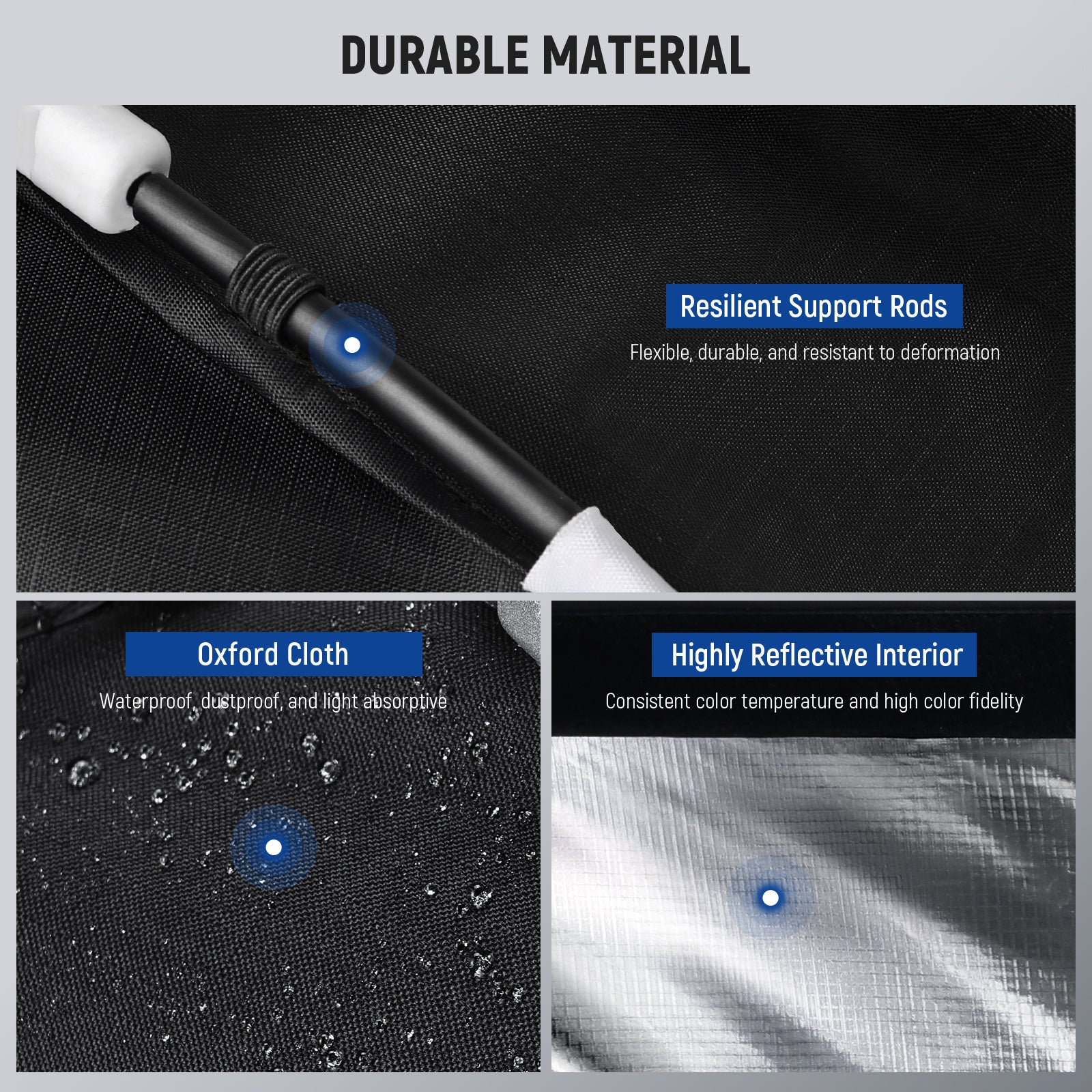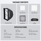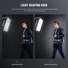 - Customizable Honeycomb Grid & Diffusers- For various shooting scenarios and photography styles - be it portrait, still life, or live streaming, a honeycomb grid makes lighting more confined and directional, and two diffusion panels attaching via touch fasteners can soften glare and eliminate shadows