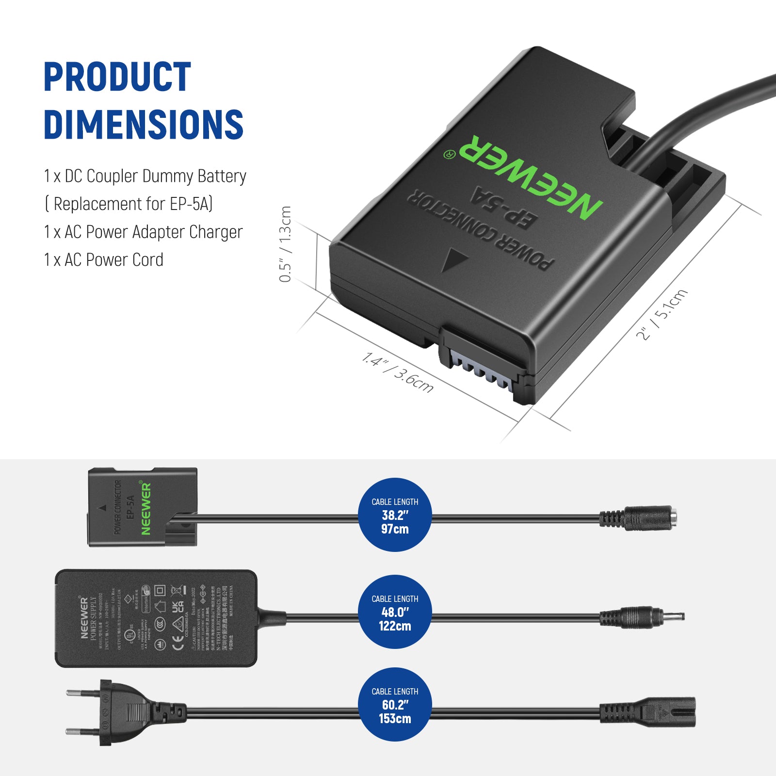- Unlimited Working Hours- This EP-5A power adapter provides continuous power to your camera from an AC outlet, allowing you to shoot, download and view video and pictures for long periods of time without worrying about power consumption