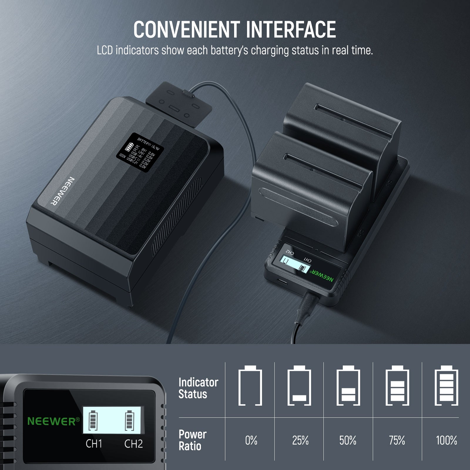 - Wide Compatibility- Compatible with Sony NP-F550, NP-F570, NP-F750, NP-F770, NP-F960, NP-F970, and NP-F975 batteries. A battery for Neewer LED panel lights, field monitors, wireless camera sliders, and compatible with Sony Handycam camcorders