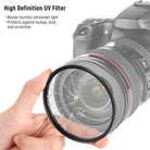 - Three Functions, One Kit- This multifunctional lens filter trio includes a UV filter, a CPL filter, and an ND4 filter, enabling you to capture stunning images and footage with proper lighting control and color reproduction. The set also comes with a high quality storage case and a cleaning cloth for efficient protection and easy cleaning