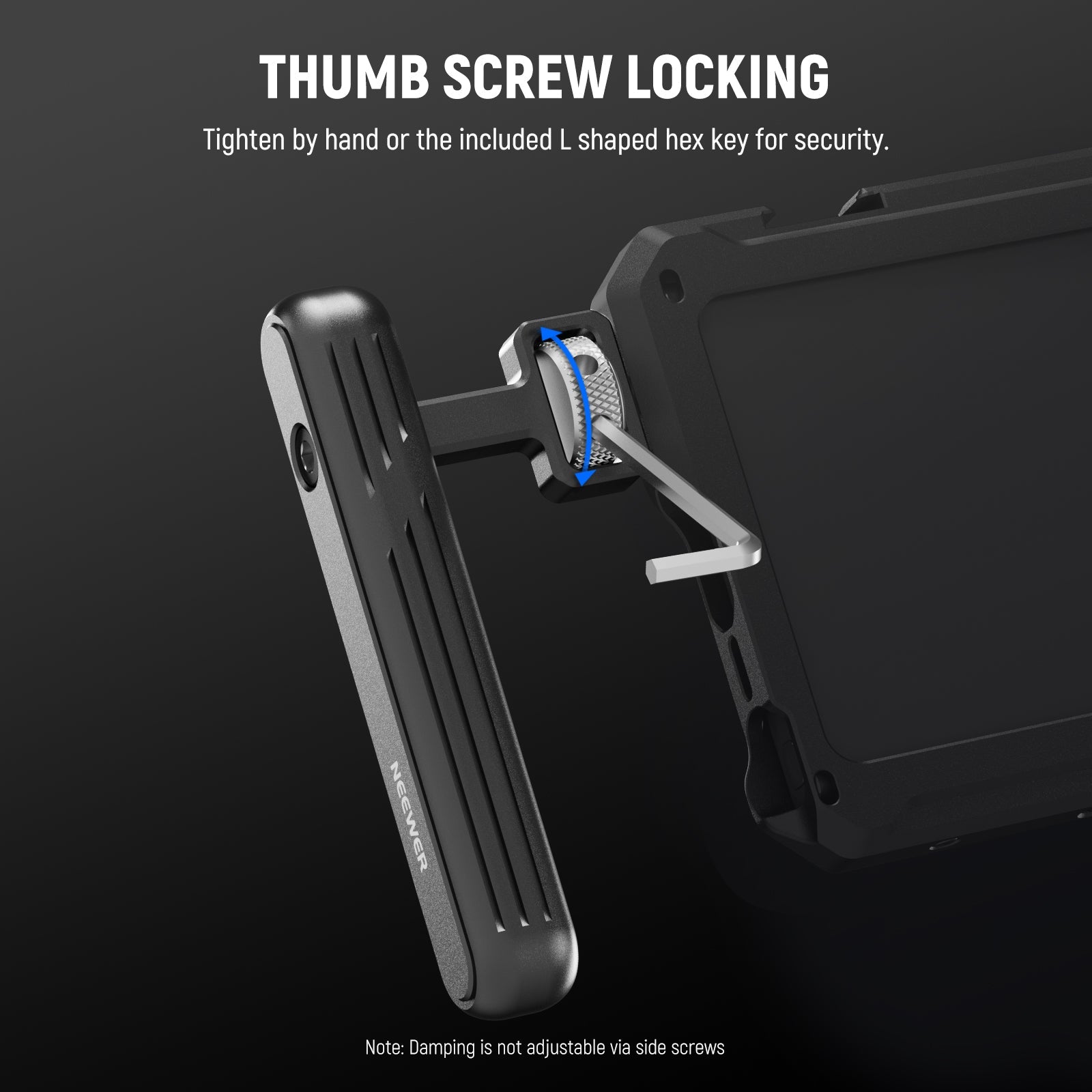 - Universal 1/4" Mounting Screw- Mount 1 or 2 side handles to your phone cage via the 1/4" screw. Manually tighten the screw with the thumbwheel or with the help of the L shaped hex key. This phone rig dual handle set is compatible with NEEWER 1st and 2nd generation Phone Cages for iPhone 16 Pro Max Plus 15 Pro Max (PA023 PA024 PA043 PA044, etc.) and Phone Cages for Samsung Galaxy S24 Ultra S23 Ultra S22 Ultra (PA042 PA021 PA016). Note: NOT compatible with SmallRig phone cage accessories