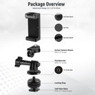 - The kit includes a hot shoe mount, an action camera adapter, and a universal phone holder, compatible with GoPro Hero 11 10 9 series action cameras or smartphones on your DSLR or ring light