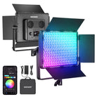 - RGBCW Full Color LED Panel Light- With 800 premium LEDs, NEEWER PL60C Full Color RGB Video Light offers 60W maximum power and 6400lux/1m 23000Lux/0.5m illuminance for bright illumination. PWM technology ensures 1% precise increment in a 0-100% dimming range with 4 precise dimming curves. CRI 96+ and TLCI 97+ bring faithful color reproduction. 2500K-10000K color temperature and 0-360° hue angles give you creative photography lighting for video recording, streaming, podcasting and photoshoots