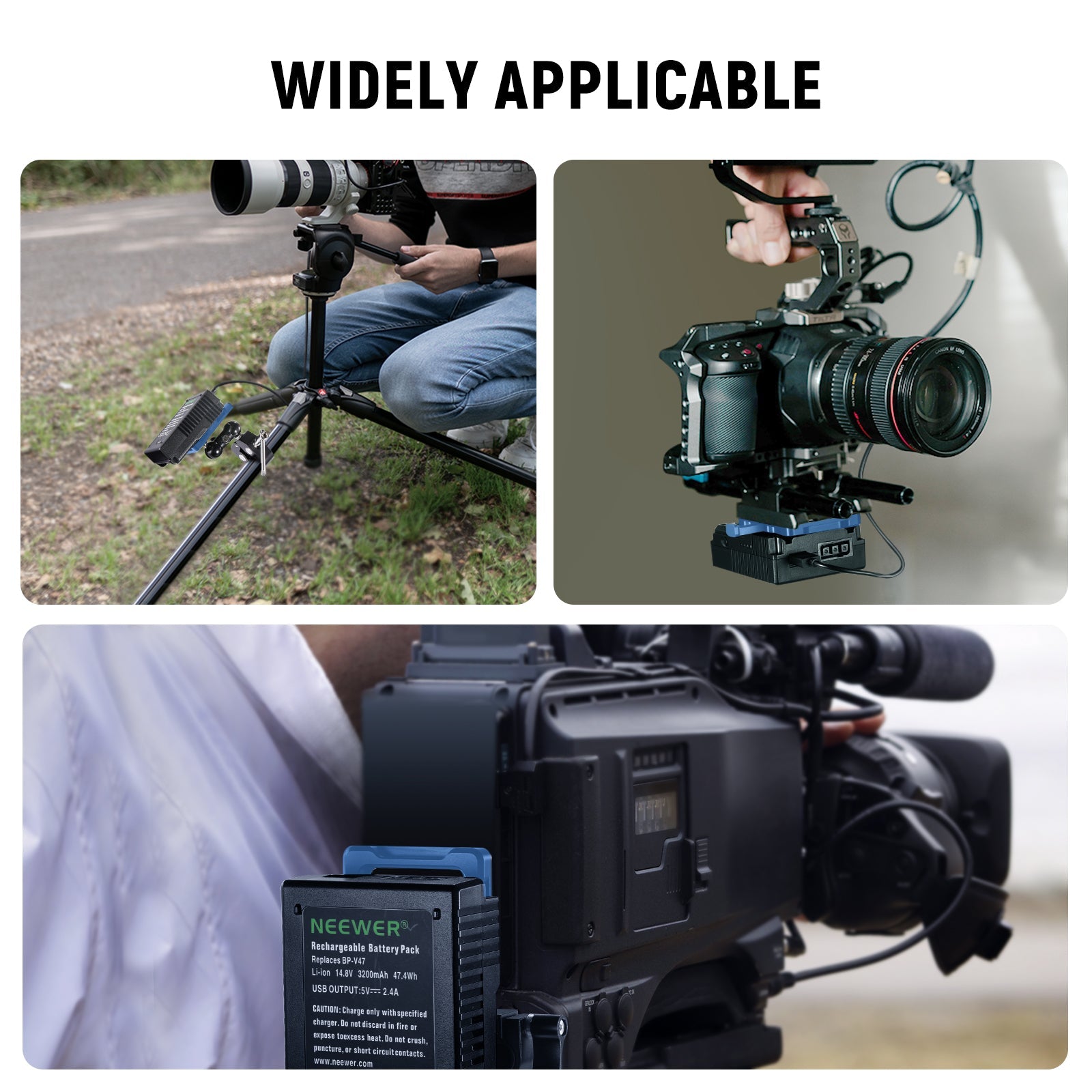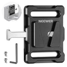 - V Mount Battery Plate- PS005 universal V lock battery plate can work with NEEWER PS099E BP-95W BP-150WS BP-190WS BP-V47 BP-V95 V lock batteries and is compatible with FXLION Sony V mount batteries and most other V mount batteries that work as external power sources for DSLR/mirrorless cameras, camcorders, and monitors. It also has a quick-release button that allows you to mount and remove the battery in a second