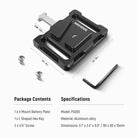 - Friendly Reminders- 1. This battery plate is only a mounting tool for V mount batteries. It does not contain electronic components and cannot deliver power from the battery. 2. The 15mm rod clamps are sold separately. 3. No V Lock part (male) is provided with the plate