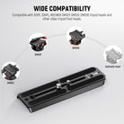 - 6.3"/16cm Extended Length- This camera quick release plate extends to 6.3"/16cm, and offers optimum balance and diverse positioning, enhancing stability for larger or bulkier setups
