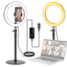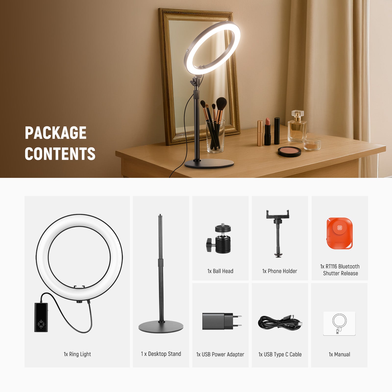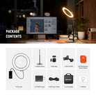 - Compact and Portable- This small lightweight LED desk stand phone ringlight kit compatible with iPhone. Desk ring light with stand, key light or soft fill light, selfie ring light, makeup light for makeup artist, Zoom lighting for computer, video podcast lighting, laptop light for video conference and calls, social media vlogs, streaming, etc.