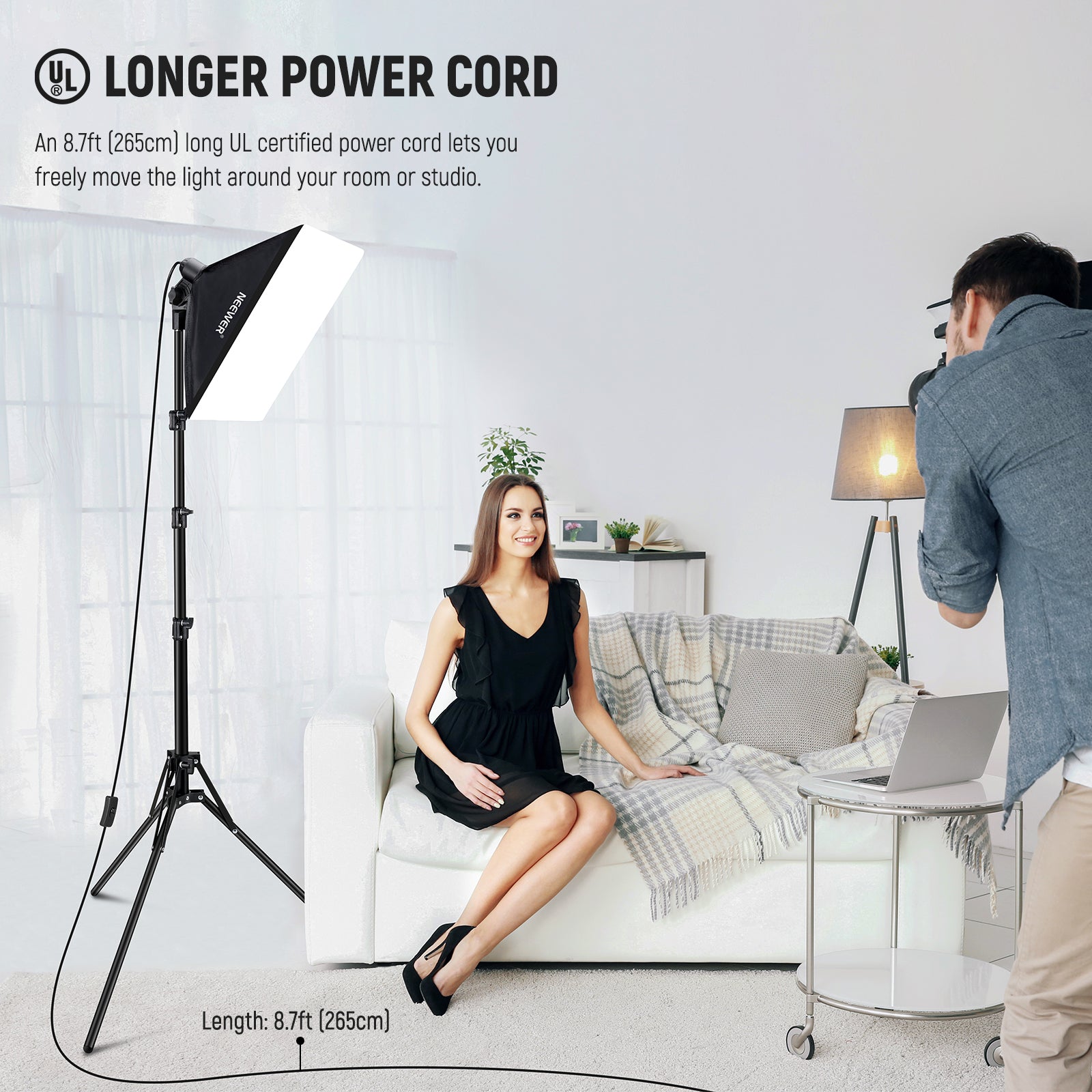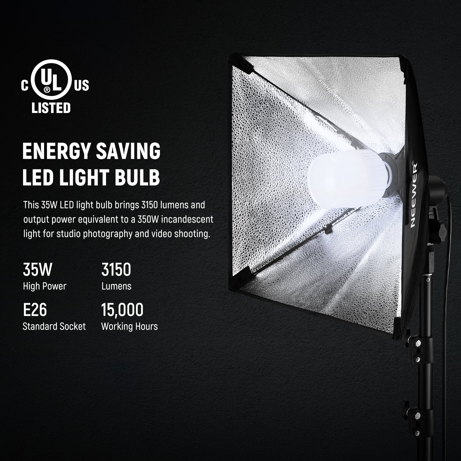 - Continuous Softbox Lighting Kit- This premium, UL certified 35W LED bulb produces a continuous light output without any flicker, which is easy on the eyes. The 5700K color temperature offers a natural and consistent daylight color to your shots, and CRI 93+ ensures accurate color reproduction