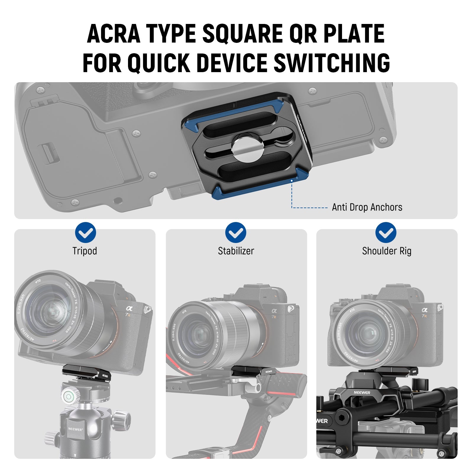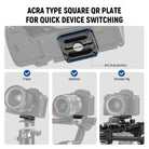 - Triple Security Arca Type QR Plate & Clamp- The QR plate with an anti-drop anchored design and rubber pad, and the clamp base with a retractable pin provide triple security for the camera mount via the 1/4" 3/8" screws. Max Load: 11lb (5kg). You can mount a cage with an Arca base to the clamp directly, or add extra stability by attaching it to the QR Plate first, compatible with SmallRig camera cages