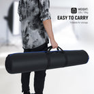- Foldable for Storage- Lift the folding legs and pull out the latches to collapse the base into a compact size for ease of storage and transportation with the included bag