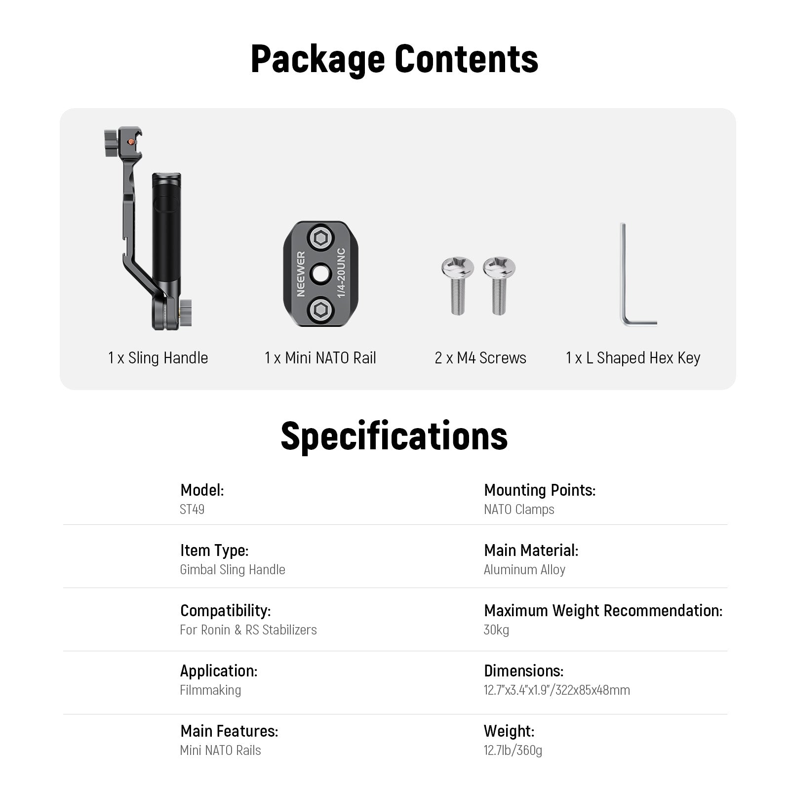 NEEWER ST49 Gimbal Sling Handle Grip with NATO Rails For DJI