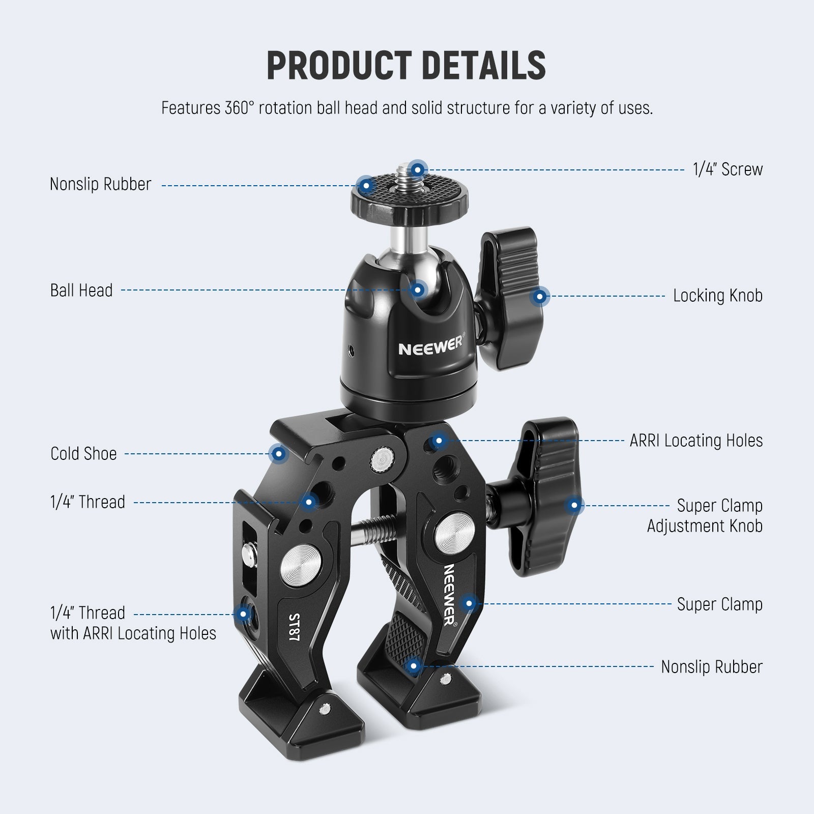 NEEWER ST87 Super Clamp with Ballhead