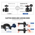 - Upgraded ball head swivels 360 degrees and tilts up and down for flexible filming/lighting angle.