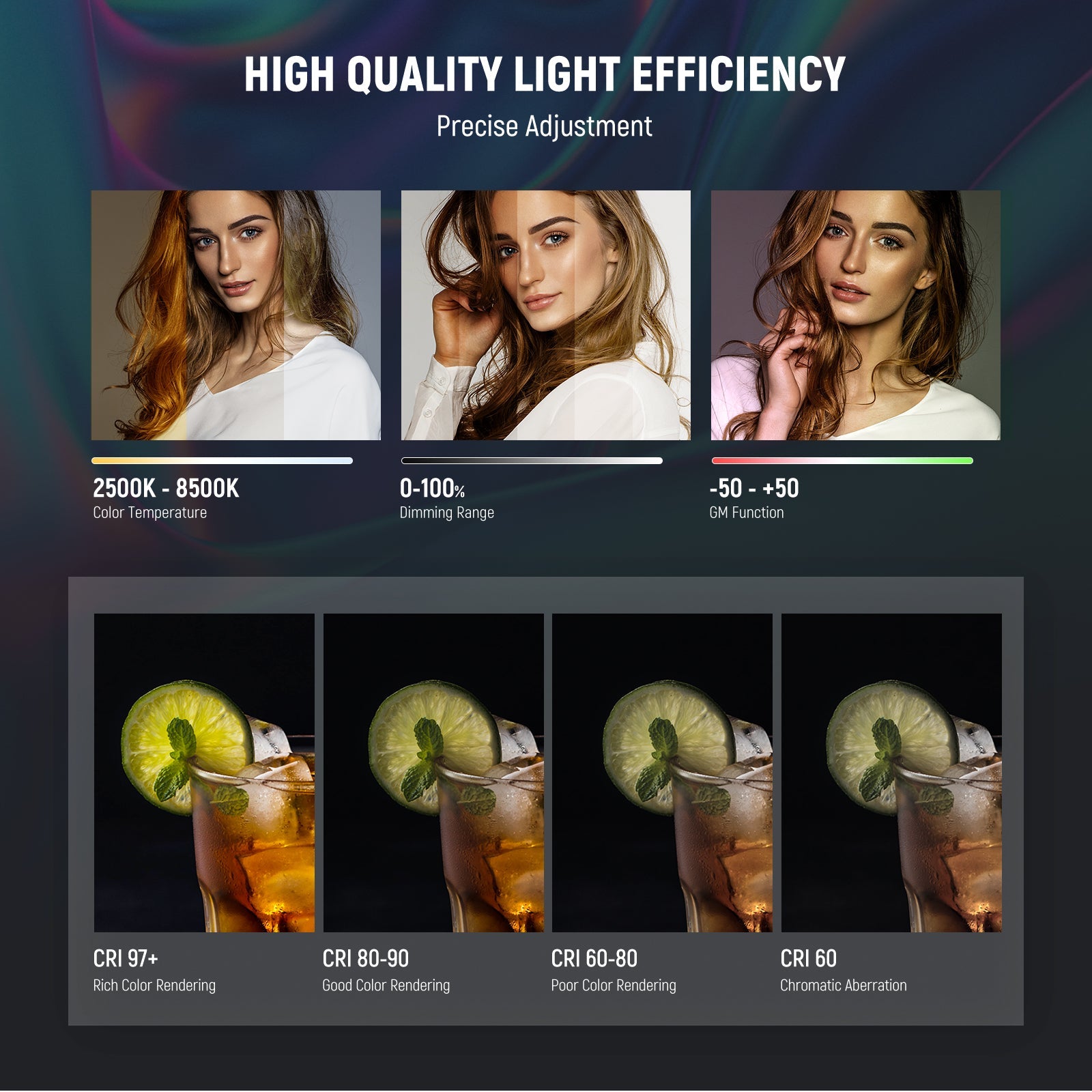 • Upgraded with APP Wireless Control- The "NEEWER" app lets you wirelessly operate this RGB video light from up to 164’/50m away and take advantage of all the functions. Within the app, you can change brightness, color temperature, hue, and saturation, select scenes, and save multiple presets for future use. An RGB color wheel lets you pick any color with one tap. OTA firmware upgrade supported