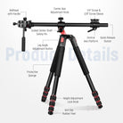 - Multi-Angle Flexible Center Column- The removable center column can be inverted for low-angle or macro shooting, or placed horizontally for overhead shooting, supporting 180° tilt and 360° rotation. As a horizontal tripod arm, you can adjust the length of the sides to balance the equipment at both ends. It also comes with three cross sections to distinguish it from a regular cylindrical column to allow for more angular adjustments