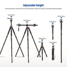- Handy & Travel Friendly- The TP27 camera tripod/monopod is made of sturdy aluminum alloy (weighs only 5.73lb/2.6kg) and comes with a storage bag for easy carrying and transportation. It also comes with a hook accessory for hanging sandbags (not included) or other heavy objects to further stabilize the tripod. Its versatility allows you to achieve a variety of needs in location shooting with just one TP27
