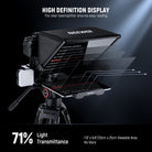- 14" HD Beamsplitter with 45° Tilt- The 14" HD beamsplitter can reflect your script with remarkable clarity. The 71% light transmission and a 10' (3m) reading range let you effortlessly read the script without having to recite every word beforehand. A U shaped bracket enables 45° tilt for optimal viewing angles